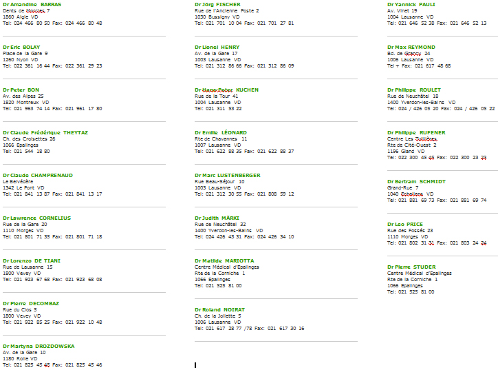 Cabinets en Suisse Romande --> LIEN